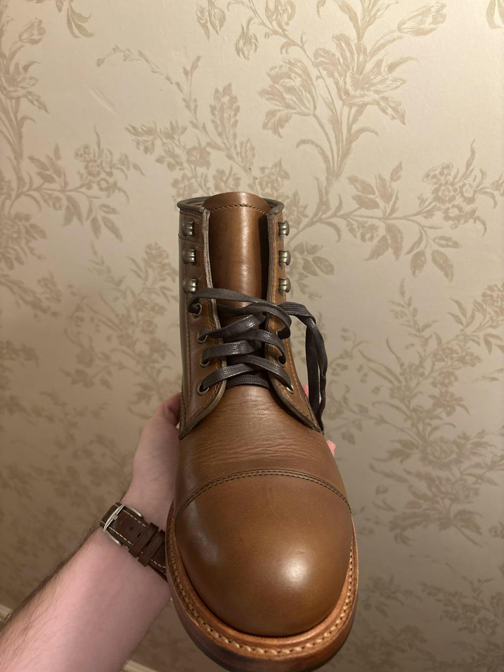 The Ernest cap toe seems to be a well made boot. I appreciate the good year welt construction, and the vibram sole. The whisky color is very nice too, not too light, but not too dark. I wouldn’t mind if they expanded into more browns or even burgundys. my only complaint, although it is very minor, is that the flat laces sometimes fall off the speed hooks, but it is not a big deal. Overall very happy with my purchase.