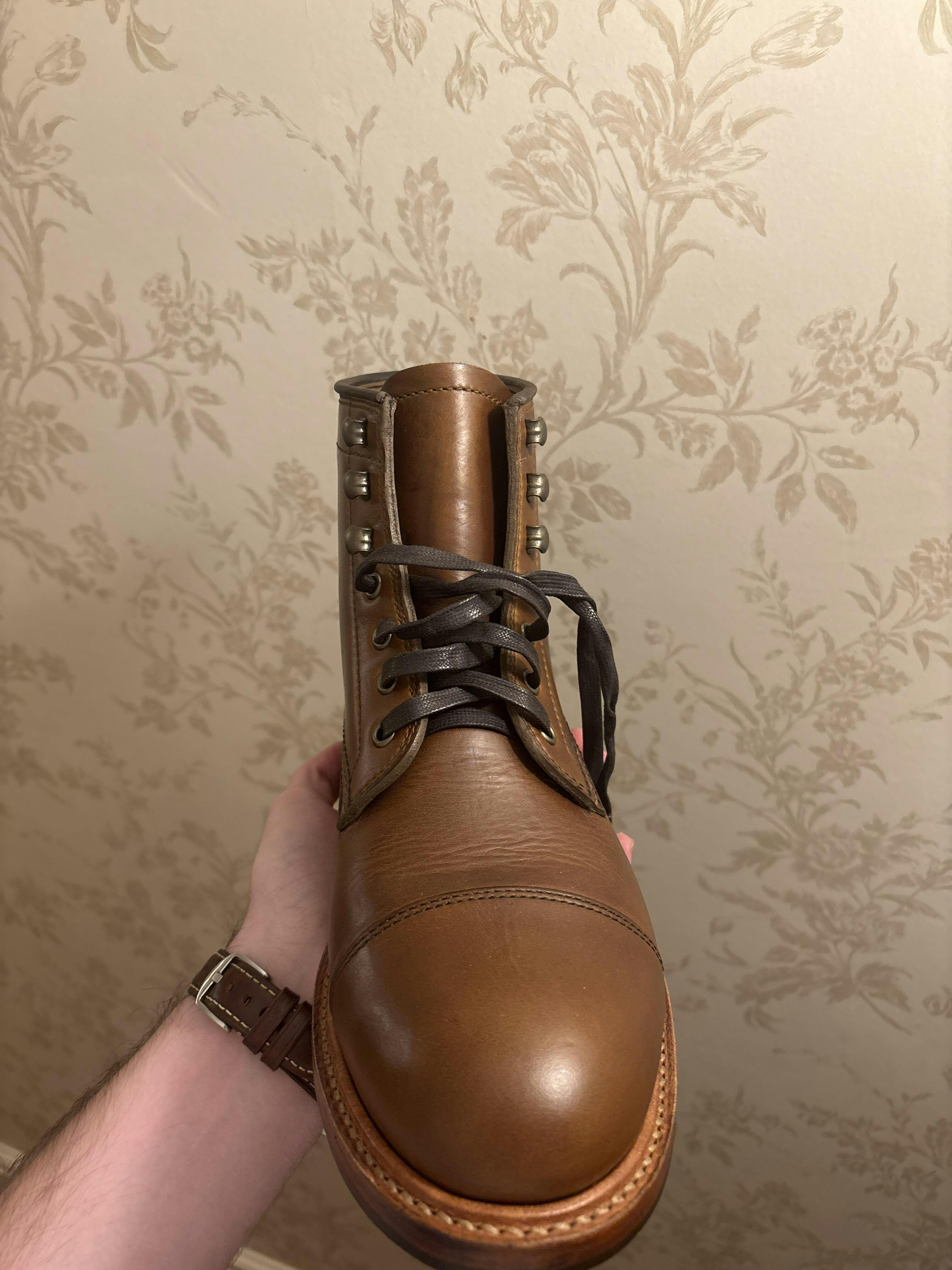 The Ernest cap toe seems to be a well made boot. I appreciate the good year welt construction, and the vibram sole. The whisky color is very nice too, not too light, but not too dark. I wouldn’t mind if they expanded into more browns or even burgundys. my only complaint, although it is very minor, is that the flat laces sometimes fall off the speed hooks, but it is not a big deal. Overall very happy with my purchase.
